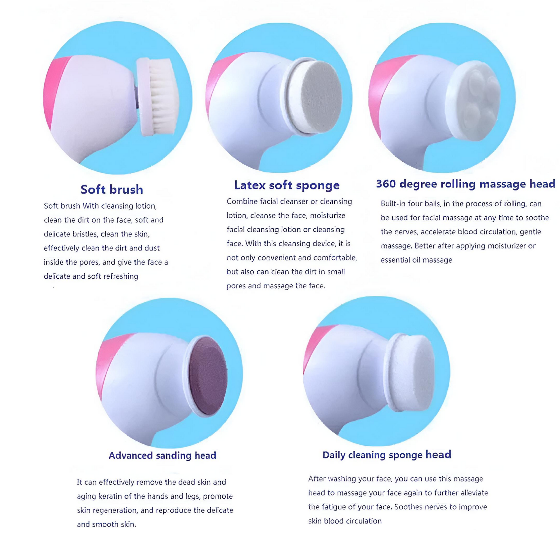 ✔️ 5 interchangeable heads ✔️ Deep cleansing + exfoliation + massage ✔️ Enhances absorption of your skincare products ✔️ Ideal for normal, dry, or oily skin ✔️ Compact, elegant, and cordless design